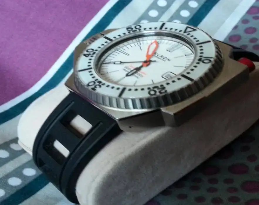 El reloj se encuentra yo diría al 95% sin marcas en bisel o caja y como solo lo he usado con el caucho tiene el armis de malla nuevo sin estrenar.