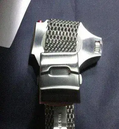 Brazalete: Caucho Helson tipo Isofrane negro y milanesa tipo Omega firmada en el cierre.