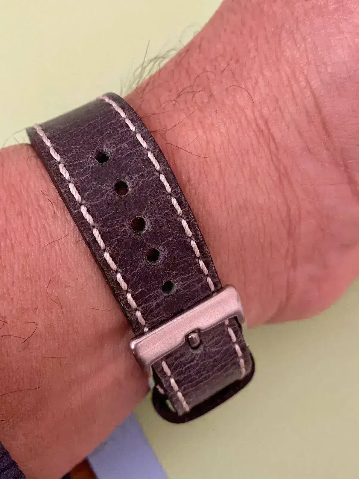 La correa es artesana y prácticamente nueva. Se añade otra Hirsch azul también casi nueva.