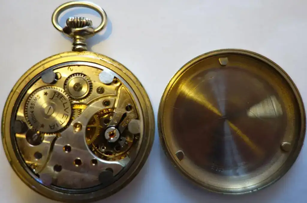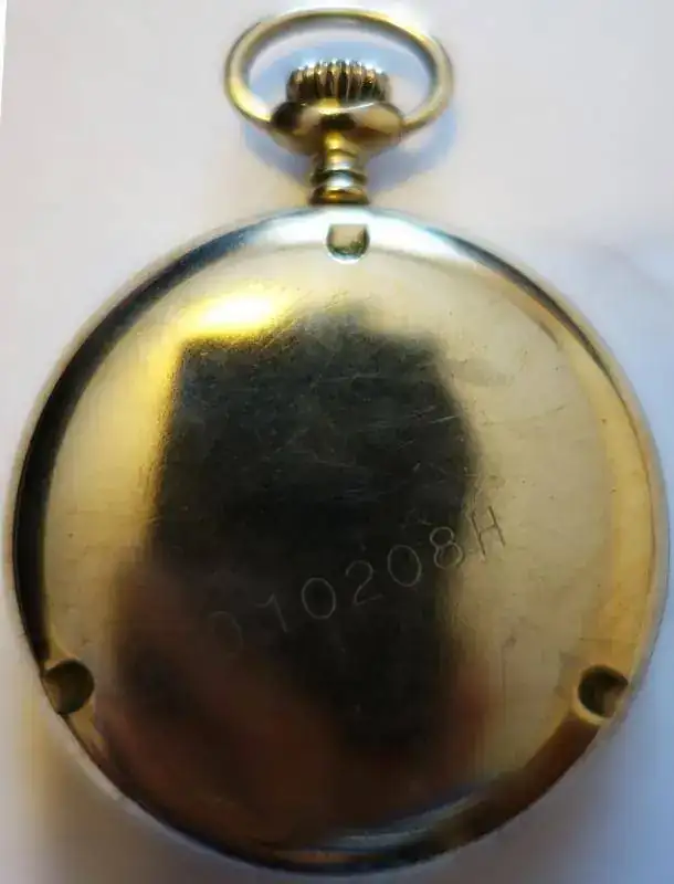 Reloj de bolsillo fabricado por la casa Helvetia, con número de serie D10208H. Trabaja con un calibre propio de Helvetia, el 32ª terminado con Geneva Stripes. A diferencia de anteriores Helvetia de bolsillo con numeraciones DH mas bajas en este se puede apreciar la falta de las palabras “Swiss Made” en el dial. Por lo observado en distintos ejemplares a partir de cierta numeración en esta marca se sustituyó el dial por esta variante.