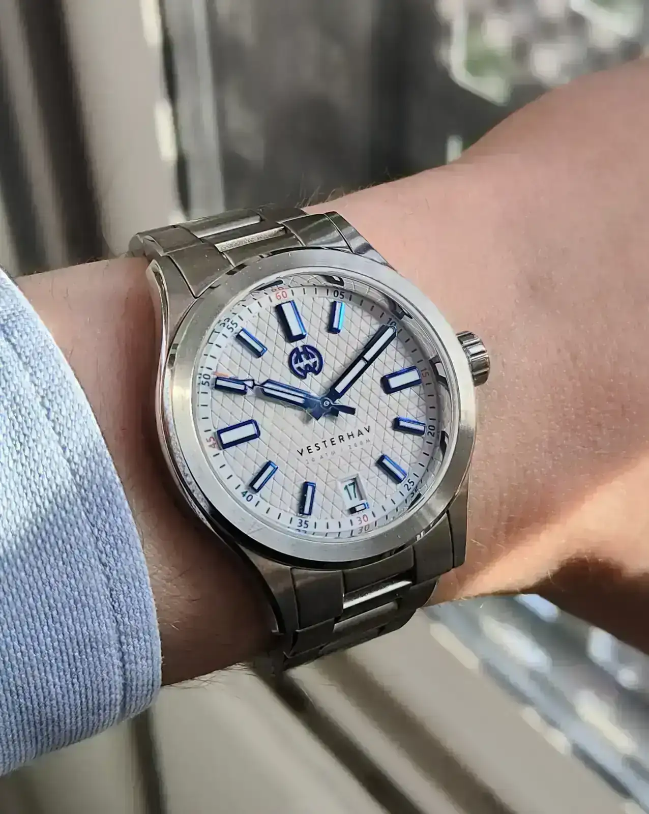 With a case height of just 10.45 mm, VESTERHAV is our slimmest automatic watch to date. Despite its impressively slim profile, we have not compromised on durability or functionality. VESTERHAV is engineered for endurance as well, and can also take on the challenges of diving, boasting a water...