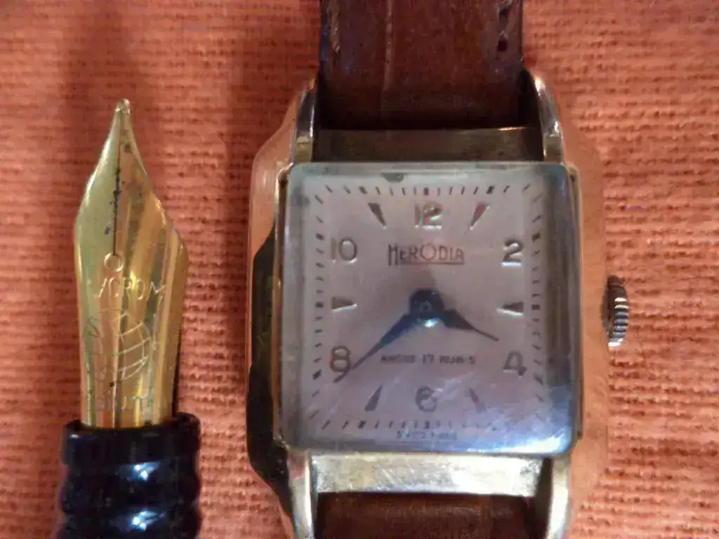 El Herodia lo compré con mi primer sueldo. Tenía 18 años - ¡¡¡¡ cómo pasa el tiempo !!!! - y fue el primer reloj que compré con dinero propio. No tardé nada en elegirlo: lo ví, me encantó y lo compré. Y acá estamos, el y yo, todavía rodando en la vida. Sé que la pieza no tiene nada fuera de lo común, no es una coleccionable ni tiene rareza alguna; pero es un reloj muy querido por mi. Tal vez no lo uso con la frecuencia que debería; últimamente le doy cuerda y tarda en reaccionar....