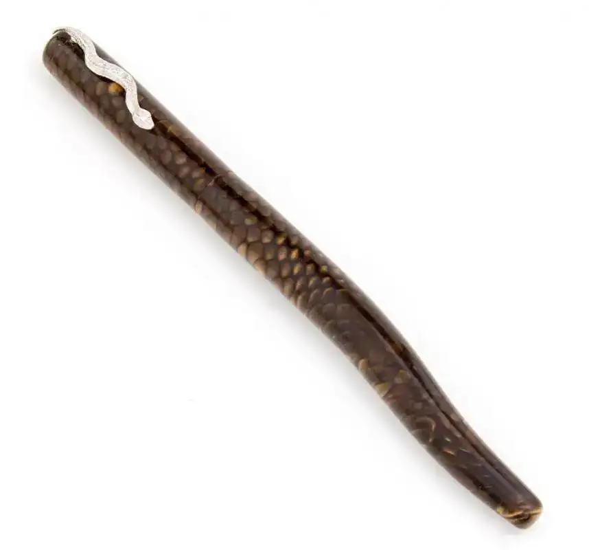 Los artesanos de GW Pens han aprovechado la forma irregular pare evocar el contoneo y la textura del acrílico para imitar la piel de este reptil en sus ediciones limitadas Serpent Gold y Serpent White.