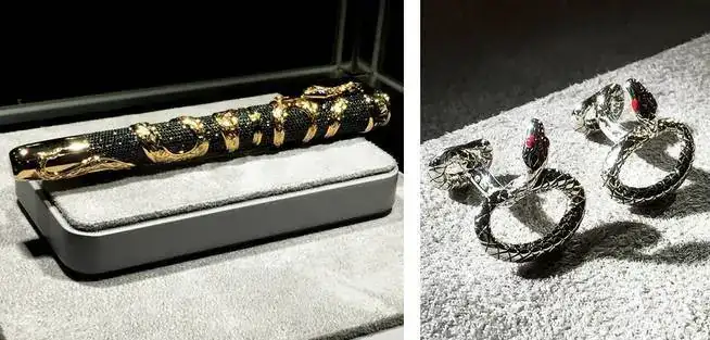 Incluso, en las ediciones de alto lujo, la serpiente se adueña de la pluma en su totalidad.