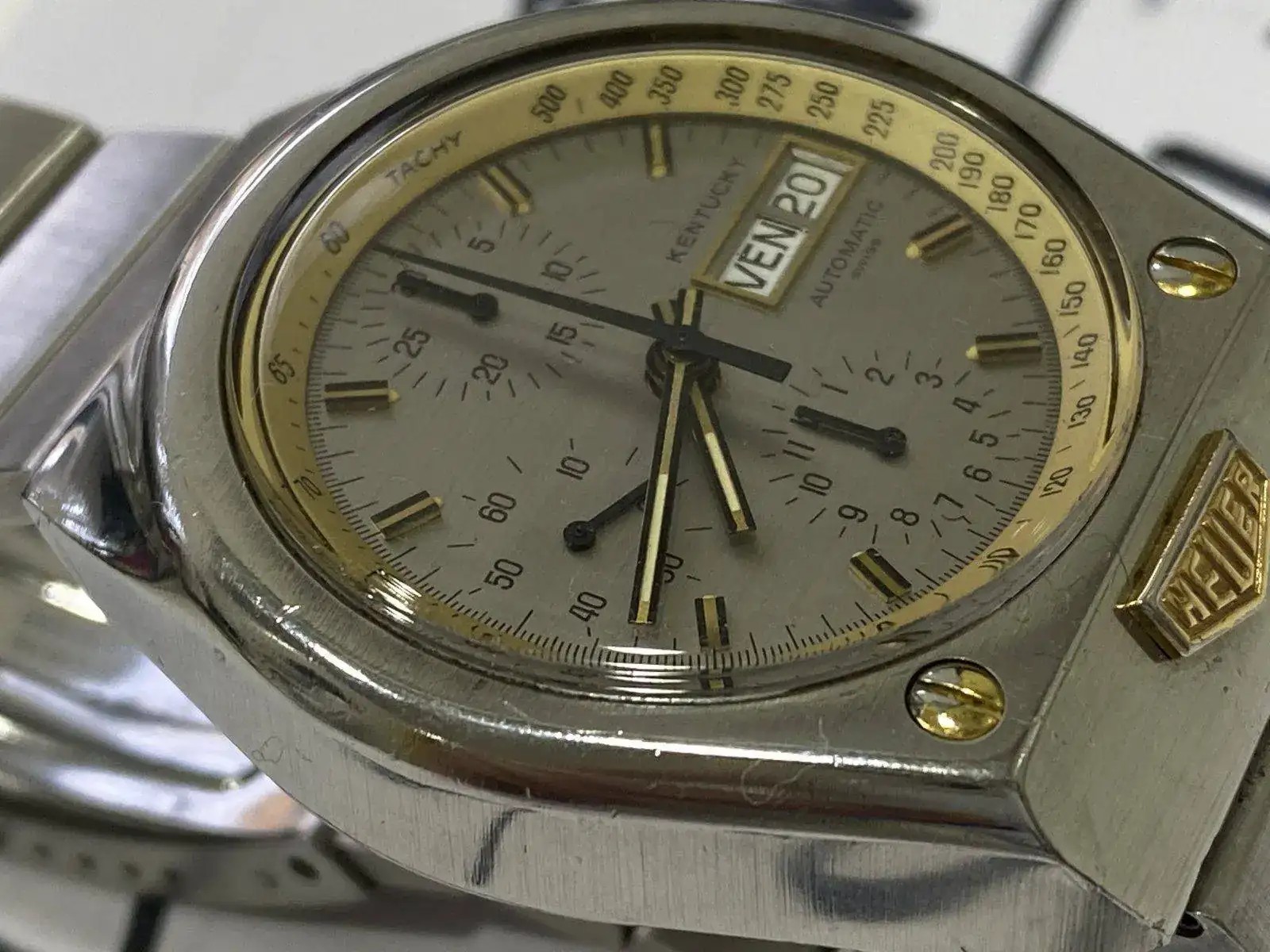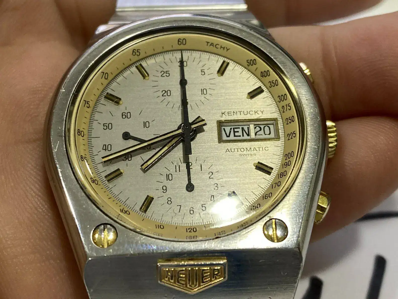 Saco de la caja este HEUER KENTUCKY del año 77 en estado NOS para VENTA EXCLUSIVAMENTE. Las perras ya estan en otra pieza para variar. Como todo en esta vida es negociable hasta cierto punto. Reloj absolutamente original y solo abierto para repaso por parte de relojero de confianza y que vendimia bastante. Es por ello que se ofrece con un año de garantia sobre el calibre.