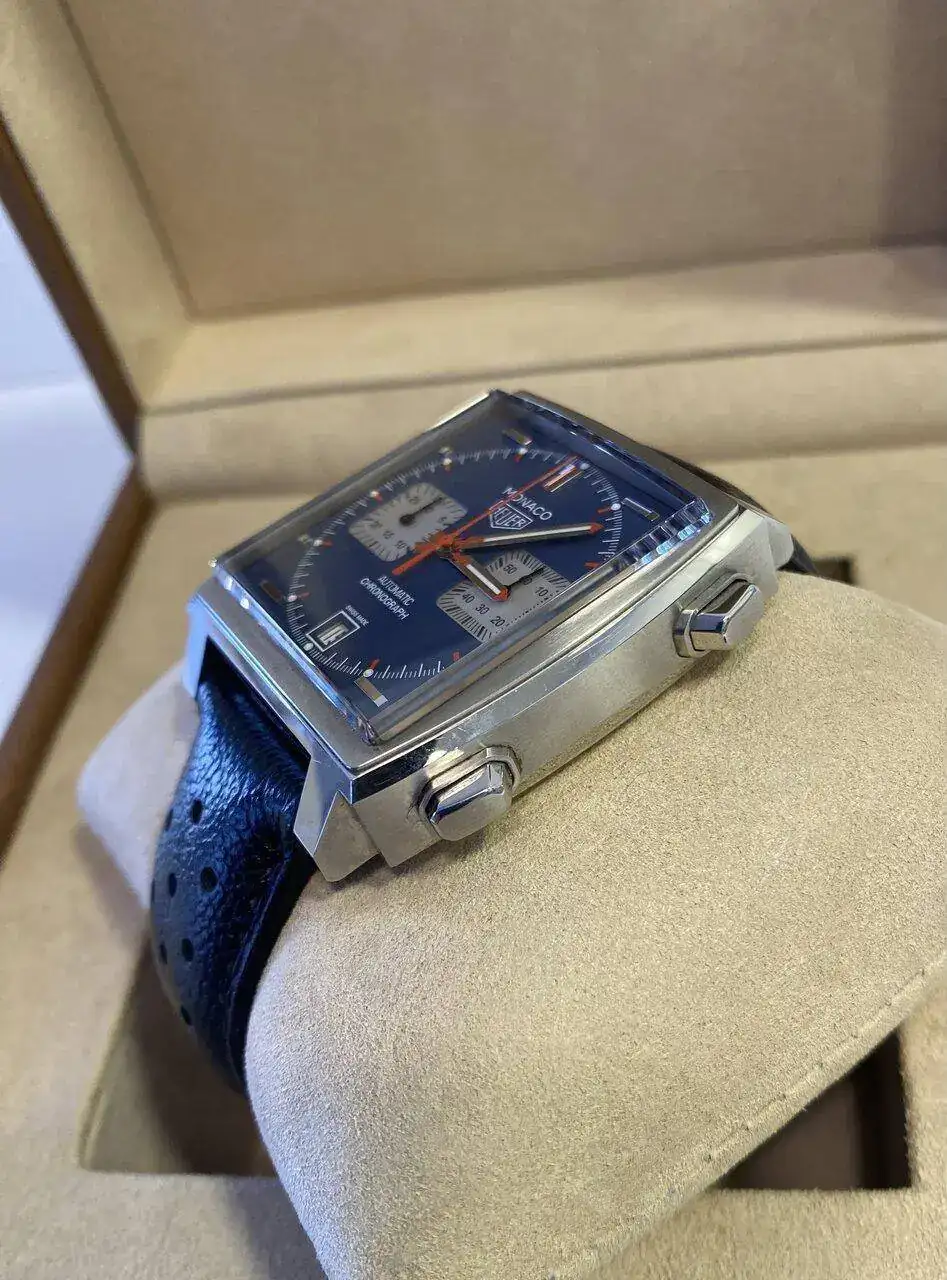 Saco a la venta la versión más icónica del Monaco, con corona a la izquierda y esfera azul petróleo, el resto de características son de sobra conocidas y con un pvp de 7.900€ en la actualidad.