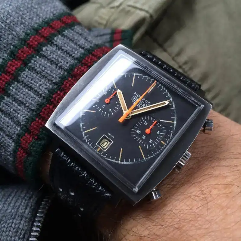 Heuer lanzó también en los 70’s el Monza, un reloj de tamaño más comedido en acabado PVD.