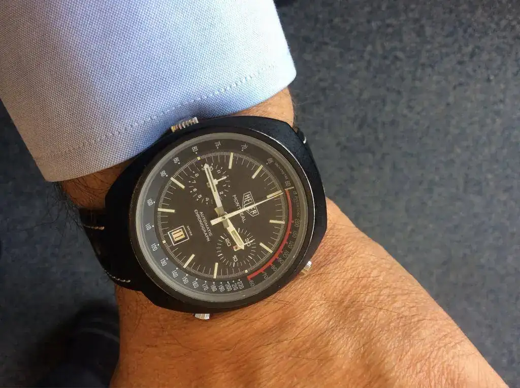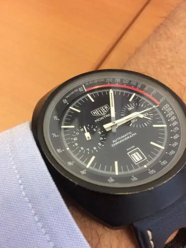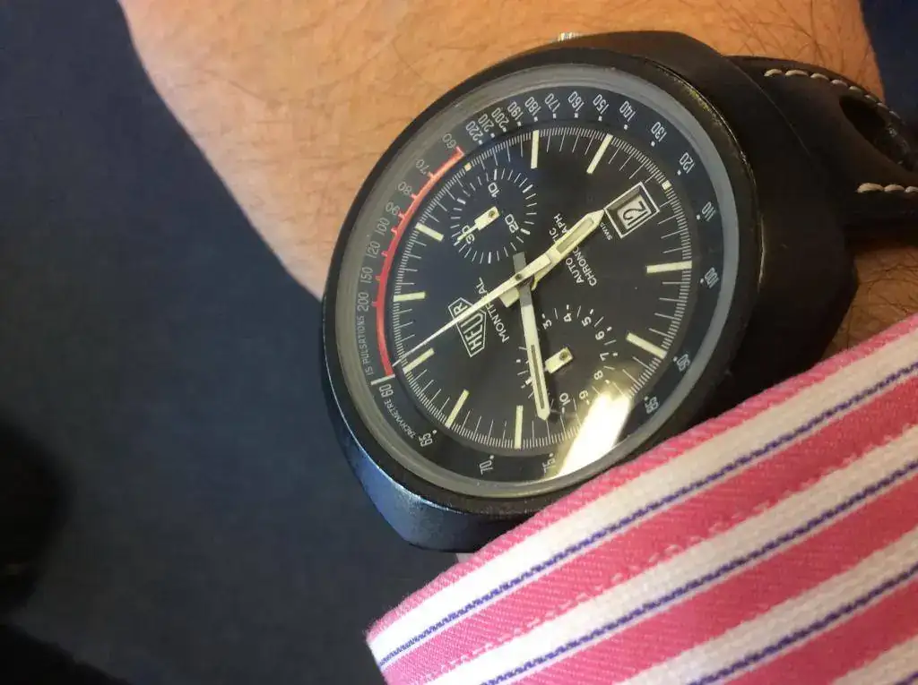 No es mi primer Heuer, pero sí el primero con esta configuración. La verdad es que lo que buscaba era un Autavia "Viceroy", es un reloj que me gusta mucho, pero este se me puso de modo y me lancé a por él.