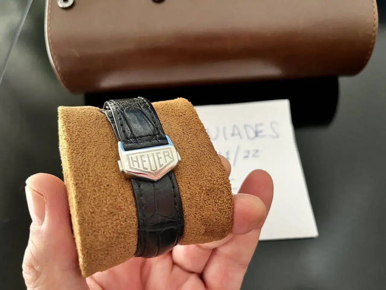 Esta unidad, por tanto, es la que tiene el logo Heuer es dial y cierre desplegable.