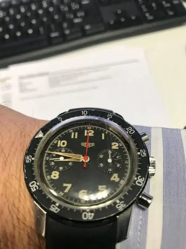 Soy de todo menos experto en Heuer, pero lo poco que mi ojo tiene con los vintage, en ese reloj hay varias partes que no me van en sintonía con el reloj, unas muy vintage y otras demasiado nuevas. Como bien te dicen, tan fácil como llevarlo a un CO de Taq y ellos podrán decirle más con respecto a él