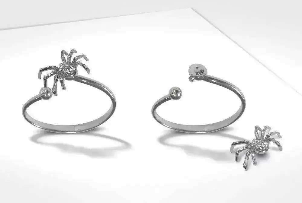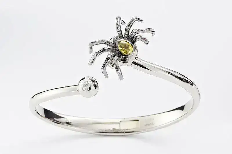 La segunda serie de una sola unidad es igual pero realizada en oro color amarillo claro (Champagne Gold, dicen ellos). En lugar de diamante, la araña porta un rubí de Myanmar de más de 1 quilate y también permite la transformación en broche o brazalete.