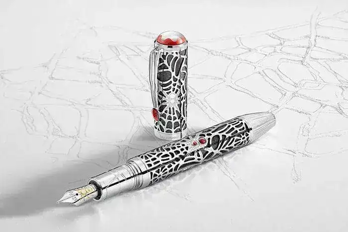 La edición ha sido presentada en seis versiones y además del tributo a Ovidio, revisita su clásico con decoración arácnida, lanzado en la década de 1920. Las series más exclusivas presentan la peculiaridad de poder ser transformadas de instrumento de escritura a joyas utilizables por separado. Aunque no me imagino yo a nadie manchando de sucia y vulgar tinta unas cosas como estas.