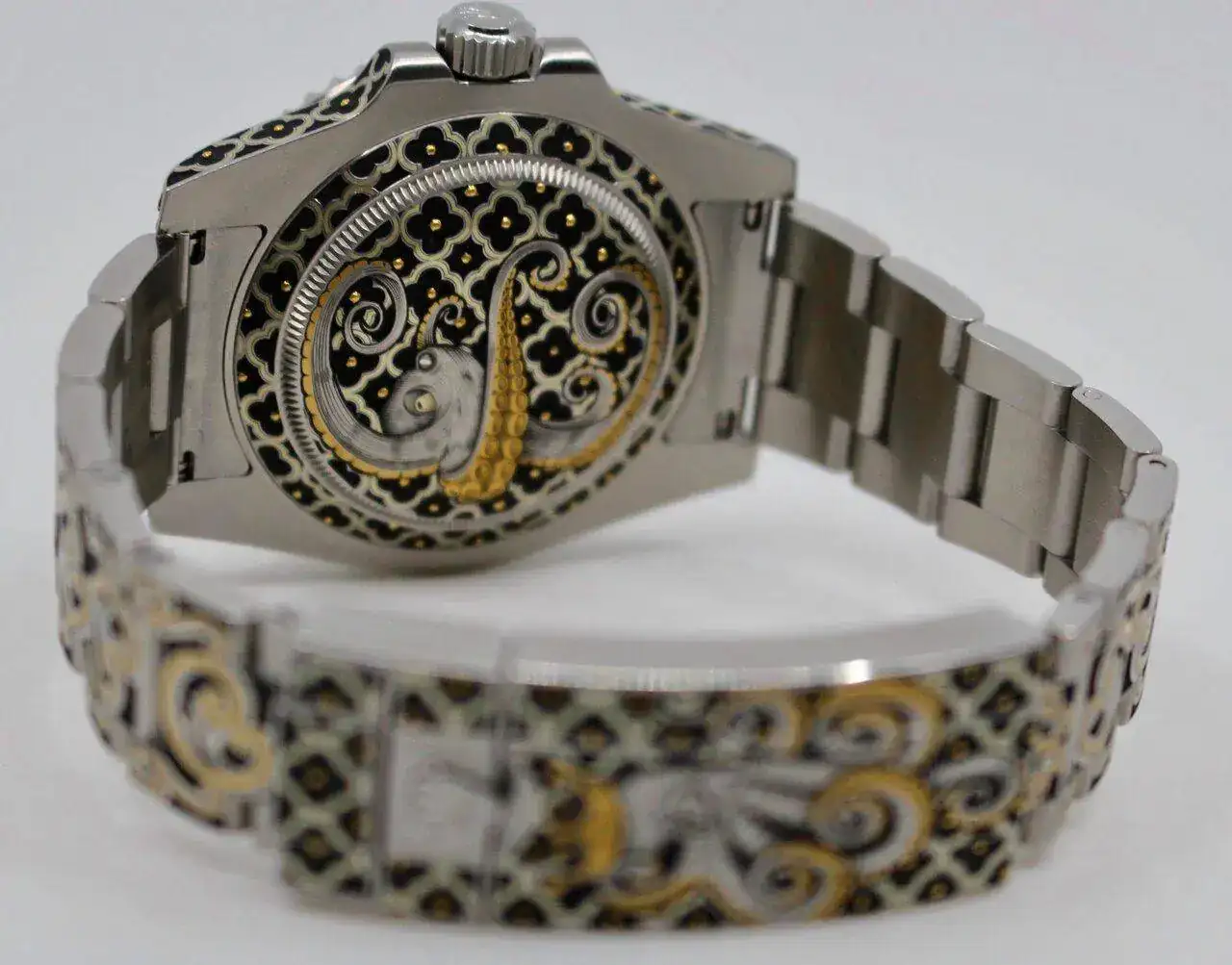Ver el movimiento siempre es algo fantástico en un reloj mecánico, pero, al menos a mi, me resulta también muy atractivo ver esas tapas ciegas con diseños personalizados que le dan un toque distintivo al reloj y que son muchas veces pasadas por alto al estar, nunca mejor dicho, tapadas por nuestras muñecas.