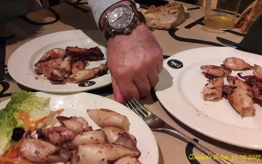 El sitio elegido fue el HOTEL BEGOÑA PARK https://www.hotelbegonapark.es/es/ donde la verdad que su Directora Lucía F. Nos lo puso todo muy fácil, permitiéndonos disponer de un patio privado en exclusividad para nosotros, donde expusimos los relojes y disfrutamos del aperitivo y bebidas para ir entrando en calor. A las 12 empezamos la fiesta y a las 14:30 nos dirigimos al comedor privado para comer… y cuando digo comer es COMER… en Asturias no se puede ir nadie con hambre, así que el menú elegido fue para saborear y para comer como si no hubiera mañana… por supuesto pudiendo repetir de todos y cada uno de los platos tantas veces desearemos.