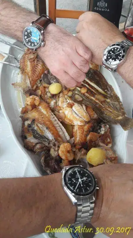 Los 3 de estas fotos, y tras ver las anteriores del ligero menu de la quedada, no se yo si de ver relojes , pero que salisteis de Asturias cebaos como Xatos...no hay duda ninguna