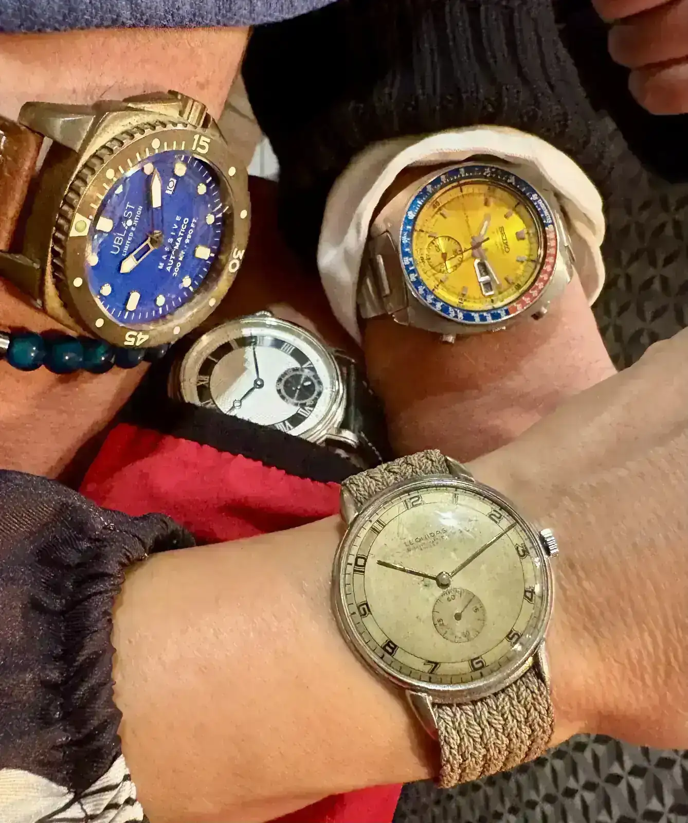 Foto con 4 usos horarios!!! Cada aguja minutera vive en una República independiente....