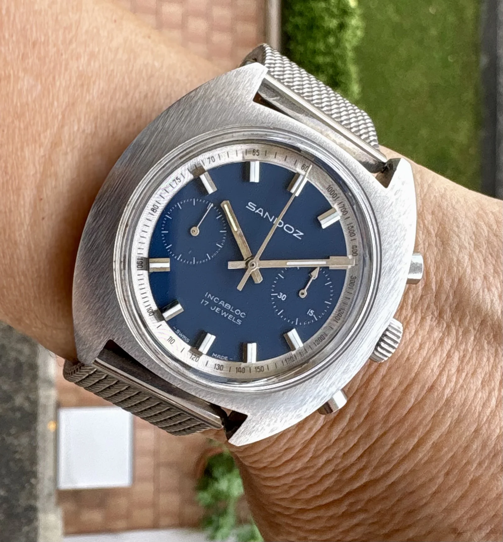 El taquímetro por ejemplo parece un bisel blanco y en realidad es acero, que con la luz da un juego de brillos que queda espectacular con el azul mate de la esfera; creo que nunca consigo que se aprecie 😣