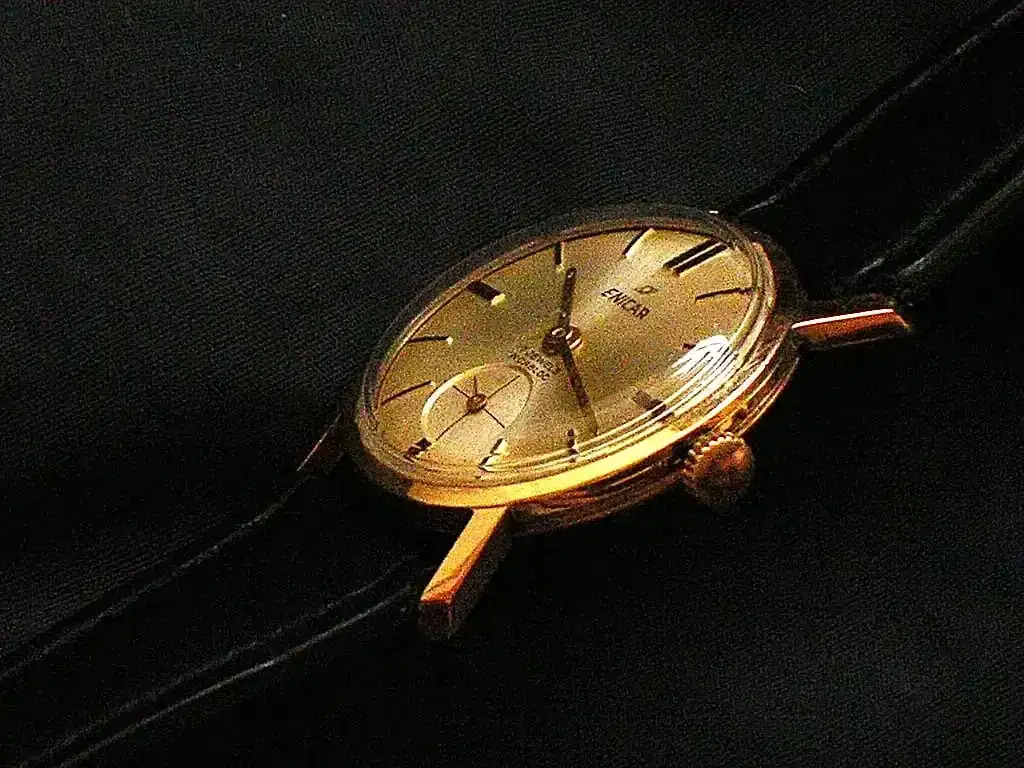 Es muy bonito, pero marca casi las 10:20…Es una herencia, un enicar incablock de 17 rubies, su caja es de oro, alguien me puede dar referencia de este bonito reloj? quisiera saber de que año es