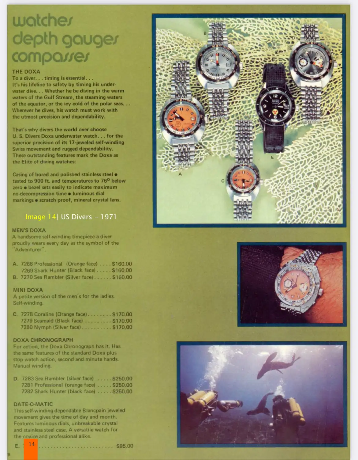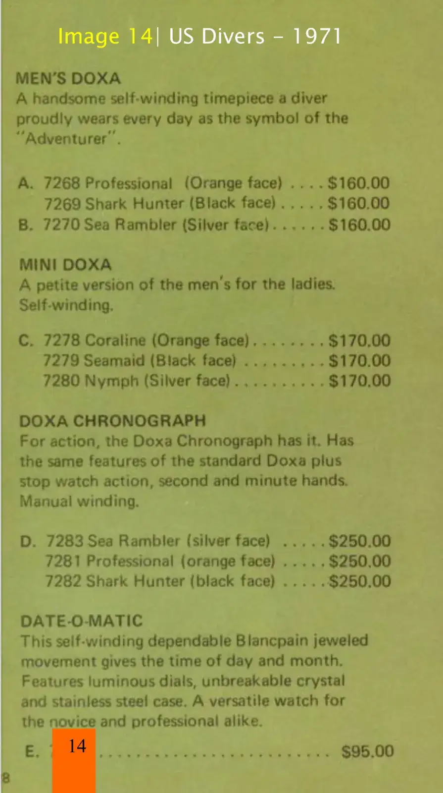 En el siguiente documento de la época se puede observar el posicionamiento de Blancpain respecto de Doxa en términos de precio, poniendo de relieve que no era aún una marca de alta relojería