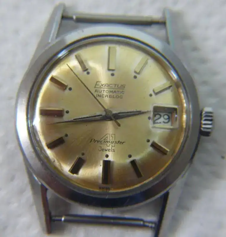 Una marca de la que queda poca información, aunque ha tenido una presencia visible en el mundo de la horología a través de sus cronógrafos con Landeron y el diseño del buzo lanzado en colaboración con Squale. El artesano de Exactus fue Henri Vuilleumier, un buen relojero que fundó su propia compañía, aunque la familia del mismo nombre había contribuida el desarrollo de la relojería suiza desde 1890. Registró el 26 de junio de 1945 la marca comercial Exactus, también propiedad de tres entidades de las que nuestro relojero era accionista: H.Vuilleumier &Cie / Montres Exactus SA / Helios SA. Todas estas compañías se asociaron con otros fabricantes (Perfecta, Precimax, Simon, Burger & Gressot, etc.) en la producción de varias marcas de relojes. La compañía matriz también produjo relojes bajo las marcas Esastus, Exactar, Exatus, Goodyear.