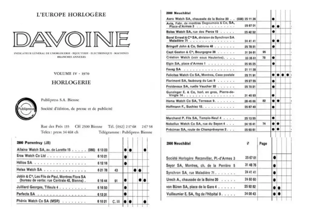“L’Europe Horlogère Davoine” ; Publipress SA, Bienne ; Volume IV-1970. Mas o menos un anuario relojero.