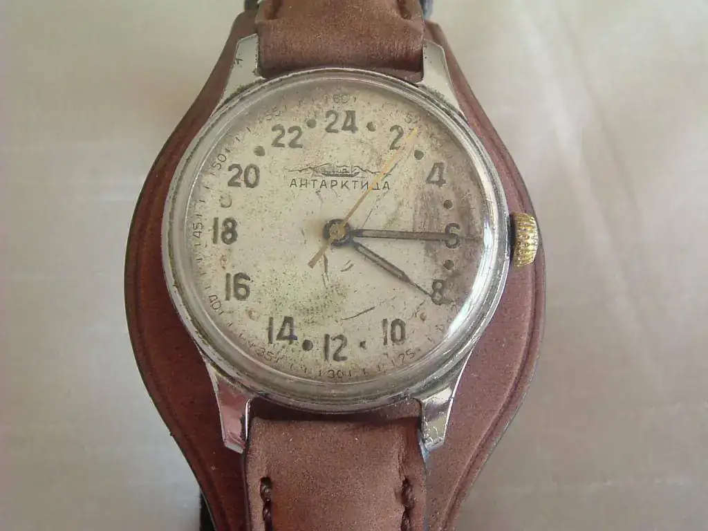 POLJOT CRONOGRAFOOtros relojes importantes producido en los 50 y con nombre de logros soviéticos. Fueron los Rodina "La madre Rusia" que aparecieron en 1956, y fueron los primeros relojes automáticos y en 1957, con la misión espacial con éxito, surgieron los relojes Sputnik "satélite" y los Antártida -Антарктида- relojes de 24 horas inspirado en la primera expedición soviética hasta el Polo Sur.