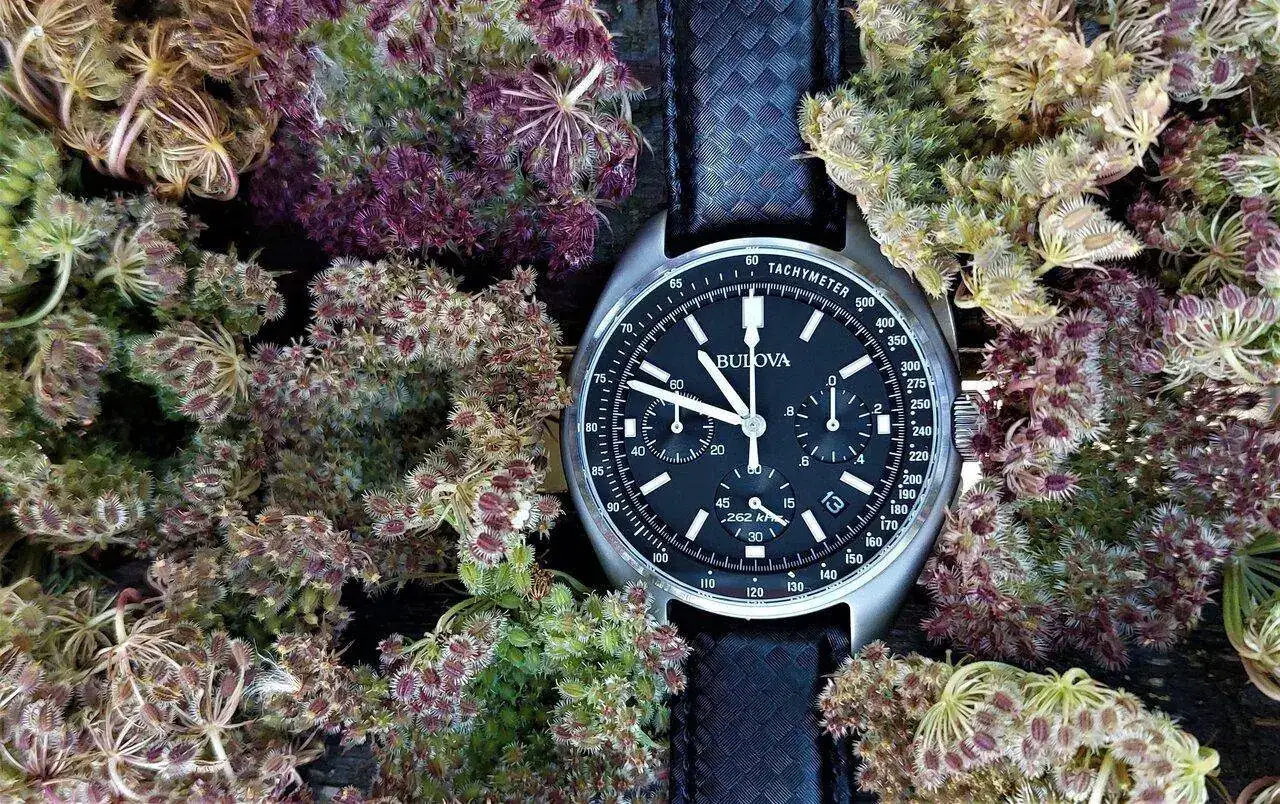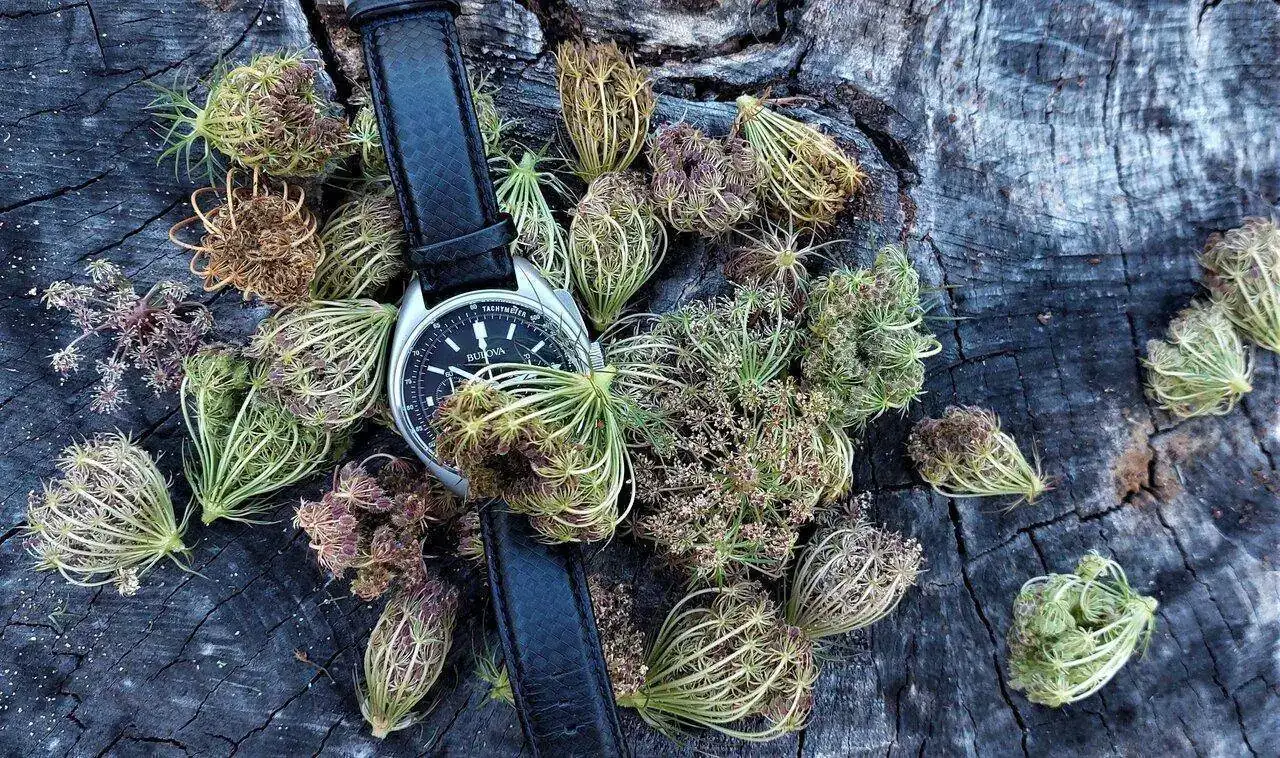Pues aquí está la foto de marras, me gusto el resultado, echándole imaginación hasta podría parecer que el reloj se encuentra sobre un fondo o pradera marina, pero no, me encuentro en el interior de la Euskadi profunda