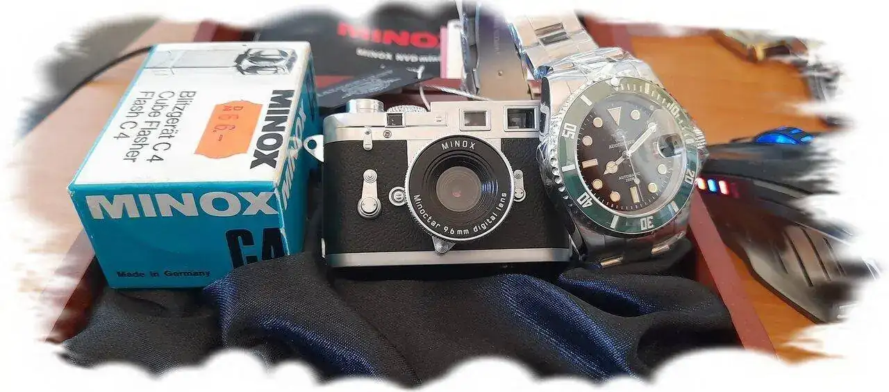 Además de los relojes y otros items, tengo una pequeña colección de cámaras, las clásicas, Zeiss Ikon, Voiglander, Yashica, Minolta (Minox) y hasta una Leica. Algún día fotografiaré los relojes con las cámaras...