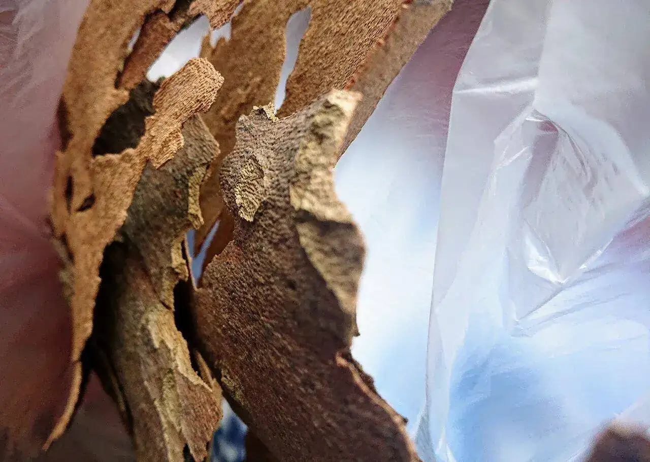 Una vez localizadas las cortezas se recogen unas cuantas y se busca un lugar donde poder apoyarlas y montar cómodamente el estudio fotográfico campero 📸