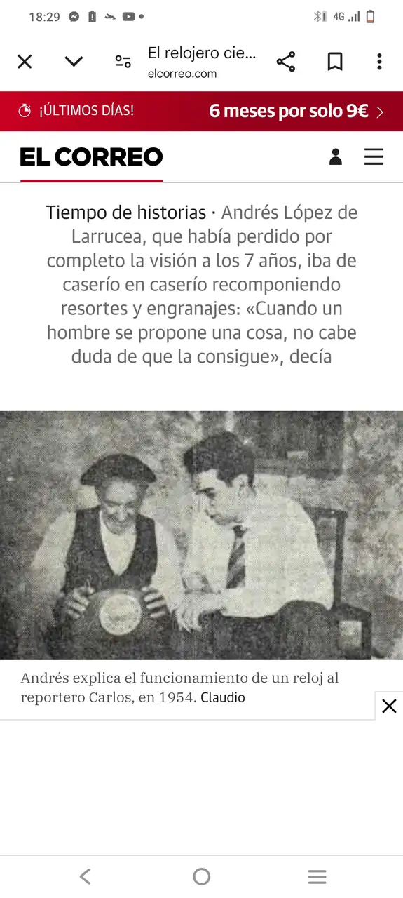 Parece increíble pero es cierto merece la pena escuchar esta historia que es real y te hace pensar que por muy dura que te parezca la vida siempre se puede lograr lo imposible y hacerlo realidad, hasta la lengua usaba donde no llevaba la vista, Álvaro Arbina nos cuenta la historia de Andrés López de Larrucea, el relojero ciego de Ajangiz, y el primer relojero ciego, que se sepa, de Europa.