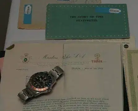 Nótese el panfleto del film "La Historia del Tiempo" y el papel membretado doble, Rolex y Tudor..
