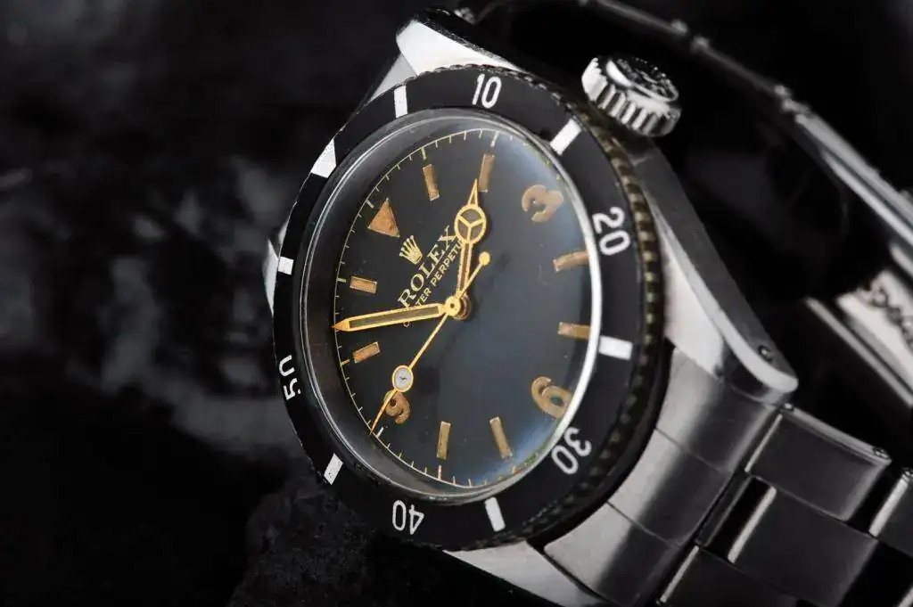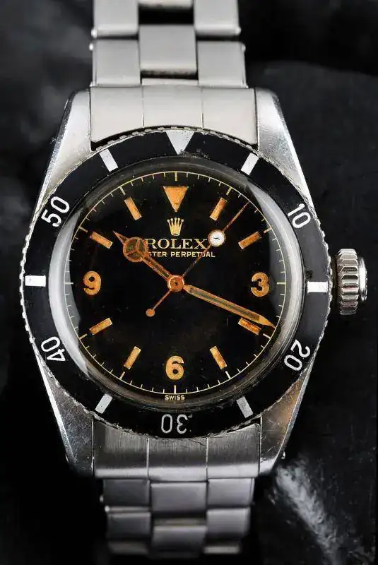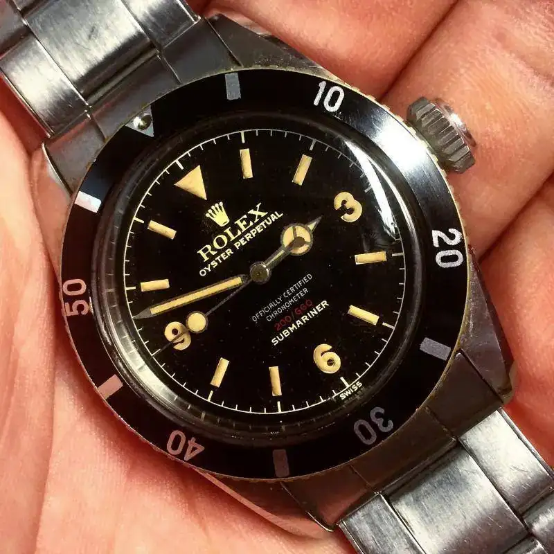 Aquél Submariner con esfera tipo Explorer, esto es con números 3-6-9, es la referencia 6200 y fue el primer reloj comercial con una hermeticidad certificada a 200m.