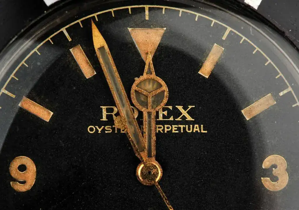 Notad la transparencia del radio de las agujas, se puede apreciar claramente La Corona Rolex debajo de la aguja horaria! Esta pieza es parte de la mitología Rolex: