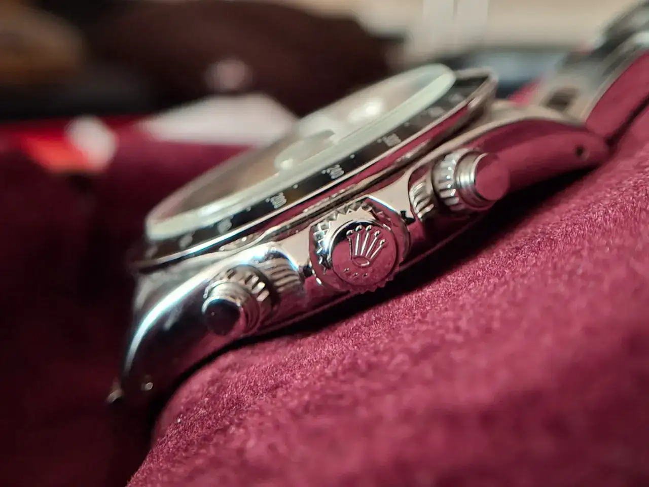 modelo Ref. 7928 con protectores de corona redondeados, una forma que definiría la colección Submariner hasta finales de los años 90. Los biseles de muchos de estos ejemplares sufrieron una desoxidación significativa tras la exposición al sol, lo que dio lugar a unos hermosos biseles tropicales.