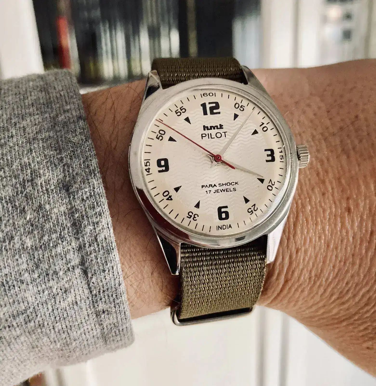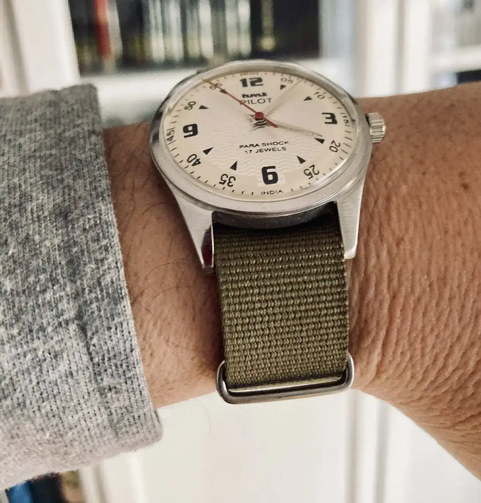 En un hilo que no consigo encontrar vi que el compañero @soydebosque nos mostraba un relojito indio que tenía su aquel... y dado que el virus ruso y el chino ya han poseído mi CRI, me dejé llevar, fue a la bahía y compré este HMP Pilot, mi primer indio, no recuerdo si es automático ó manual, pero como roto mucho los relojes y no tiene fecha... para mi es manual.