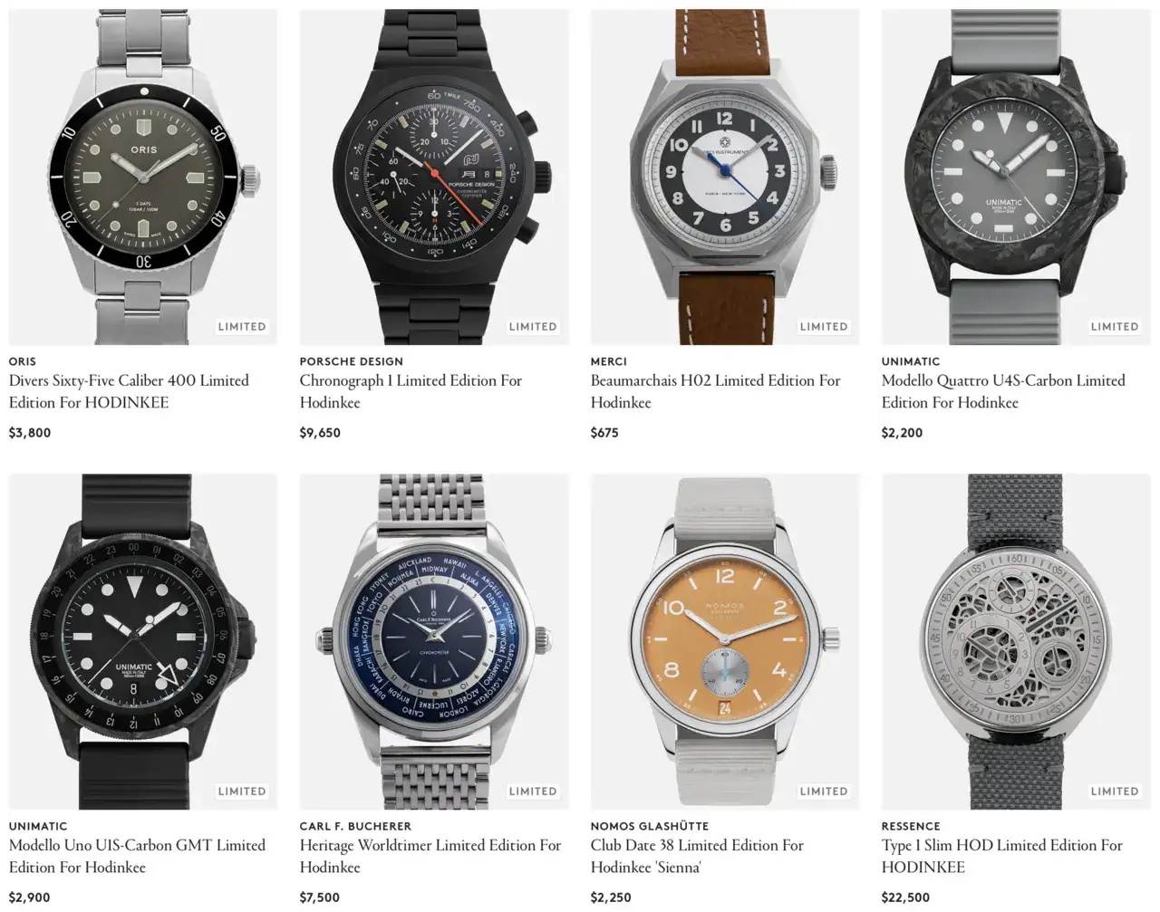 Justo el Porsche Design es el he entrado esta mañana a buscar con ilusión, lastima. También es cierto que si estuviera al 50% tampoco habría llegado a tiempo 😉.Estas son todas las piezas buenas de ediciones limitadas Hodinkee que les quedan, y como se puede ver ninguna contempla un descuento: