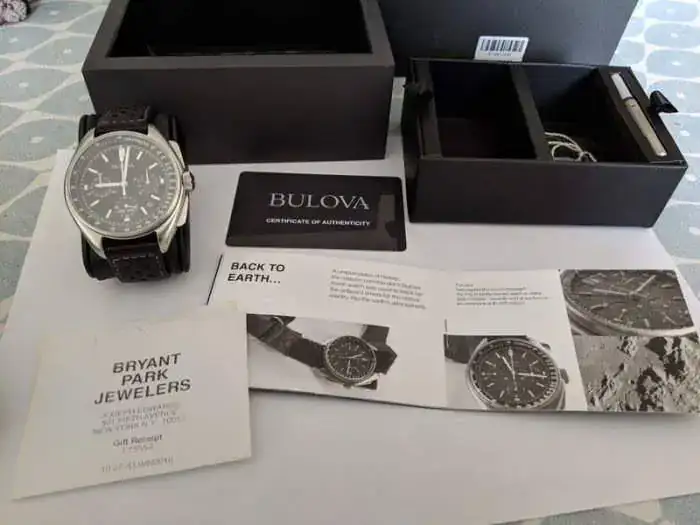 Hace poco mas o menos un mes compre en ebay a un vendedor de Canada, un reloj en este caso es un Bulova el modelo 96B251, tambien conocido como Bulova Lunar Pilot, el caso es que lo compre y todo fue muy bien, desde Canada tardo relativamente muy poco en llegar aqui a Valencia exactamente 4 dias,bastante rapido,el tema es que cuando abri la caja de reloj todo estaba correcto,tanto el reloj como la caja etc, como todo lo descrito por el vendedor,pero cuando abri la pequeña caja que iba en el interior, en el fondo de la caja,alberga un pequeño hueco donde deberia haber estado un pequeño libro sobre la mision del Apollo XV,que no estaba,me he puesto en contacto con el vendedor y afirma que el reloj solo llevaba lo que me mando,por otros medios he intentado buscar este pequeño libro,pero desafortunadamante no he podido hacerme con el,es por eso que posteo el problema que tego por si hubiese aqui en el foro alguien para echarme un ayuda y aportar algo de informacion de como conseguir este libro que tan importante es para mi como el reloj en si,podra parecer una tonteria no tener esto pero para mi no lo es,de todos modos gracias anticipadas,por si alguien me echa un cable,pongo un par de fotos para que veais lo que digo asi como el enlace que pongo a continuacion, donde se ve con claridad en un video de youtube, exactamente en el minuto 2:50 el pequeño libro en cuestion. https://www.youtube.com/watch?v=wzly81QbYgI