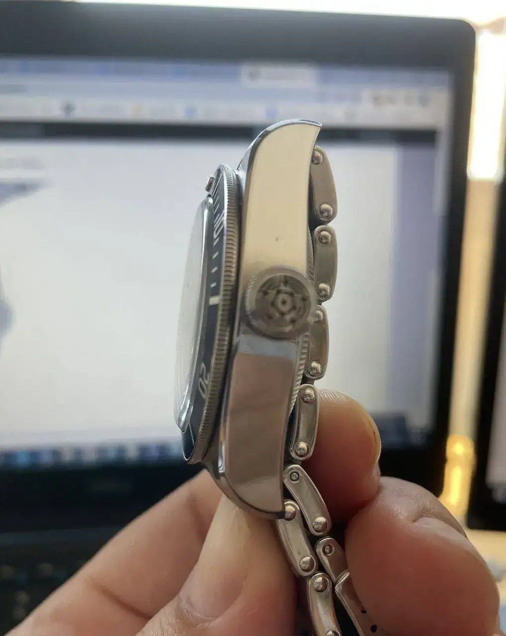 Ese hueco que se ve donde señala la flecha hace que si presionas el bisel contra la caja ceda unos milímetros. Os pasa eso a los que tenéis este modelo.