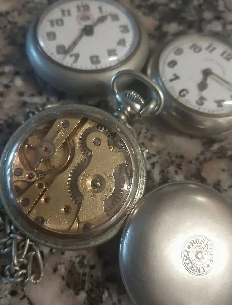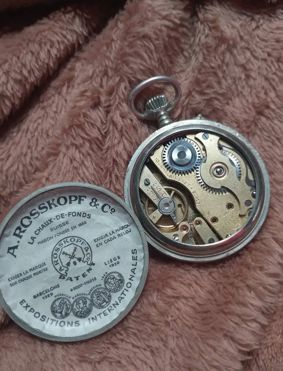 Emulando a mi querido amigo @tresenraya abro este hilo en homenaje al Sr. Roskopf en el 135 aniversario de su fallecimiento. Hoy me siento verdaderamente afortunado de poder enseñar este reloj que hacía mucho tiempo estaba deseando incorporar a mi pequeña colección. Se trata del "Montre proletaire" con el que su creador Georges-Frédéric Roskopf ganó la medalla de bronce en la exposición internacional de París ese mismo año y fue elogiado en público por el mismísimo primogénito de Louis Breguet, que escribió un manifiesto a su favor. Lo fascinante de este reloj, es que Roskopf lo diseñó (tardo unos 10 años en hacerlo) para que fuese robusto y simple, ergo económico y así poder llegar a las clases trabajadoras (de ahí su nombre). El calibre (de más que notable calidad) está simplificado al máximo y consta de 57 piezas, sin embargo equipa un básico sistema de dar cuerda con la corona, cosa que la mayoría de relojes de su época aún no incorporaban. La hora se ajusta con el dedo, manualmente, sobre sus robustas agujas de latón. El muelle real, es una patente de Adrien Phillippe. Como os podéis imaginar no es nada fácil encontrar un ejemplar en buen estado de esta primera generación de relojes y realmente escasean en el mercado del coleccionismo. No tiene decorados sus puentes, sus rubís no están jalonados con chatones de oro, pero su importancia histórica en el mundo de la relojería no tiene parangón.