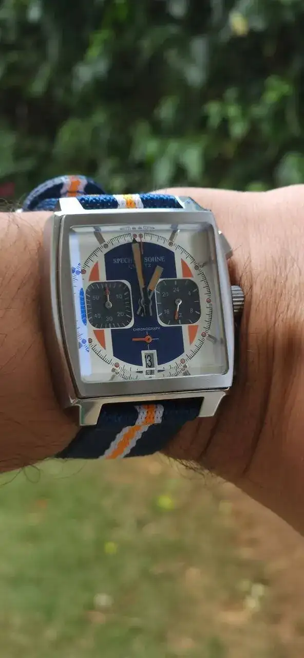 Un opción interesante para nosotros acá es AliExpress pero con la desventaja de que muchos relojes pueden tener algún que otro problema de calidad y los diseños generalmente no son originales. Sin embargo, este homenaje chino que les muestro hoy me enamoró desde el primer momento que lo ví y por supuesto, le cambie la correa por una que también había visto anteriormente que parece diseñada ad hoc para el reloj.