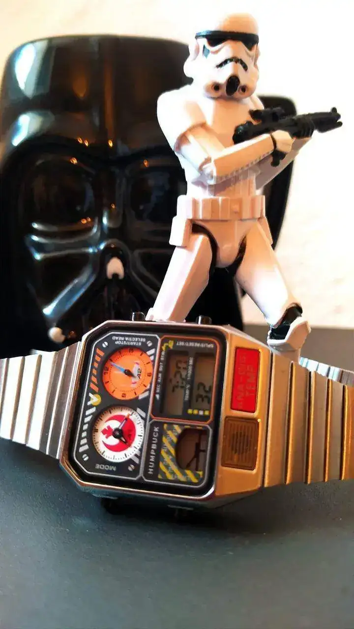 En este punto hay que decir que el reloj de Citizen no es que sea una reedición , como nos tiene acostumbrados por ejemplo Casio con su reediciones vintage, sino que este es un reloj de los años 80 que Citizen sigue fabricando. De hecho hace poco tuvieron que realizar modificaciones en el modulo porque el conteo de la fecha creo que se quedaba pillado en el año 2019...Lo peor de todo es que el relojito cuesta 250 napos y la versión de Star wars se pone en unos 350. Ni que decir tiene que el precio está infladisimo y aunque a uno le gusten las primeras pelis de Star wars porque eran de cuando uno era un crio, no me voy a dejar estafar por los de Citizen.