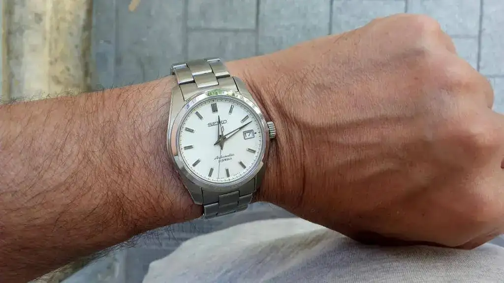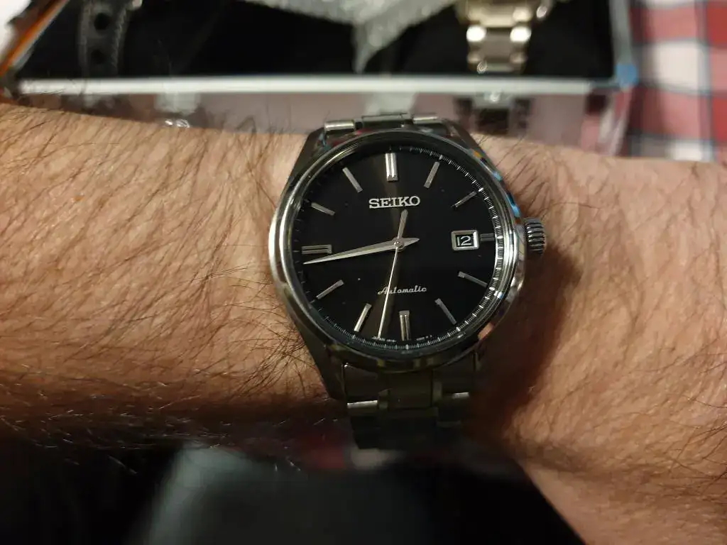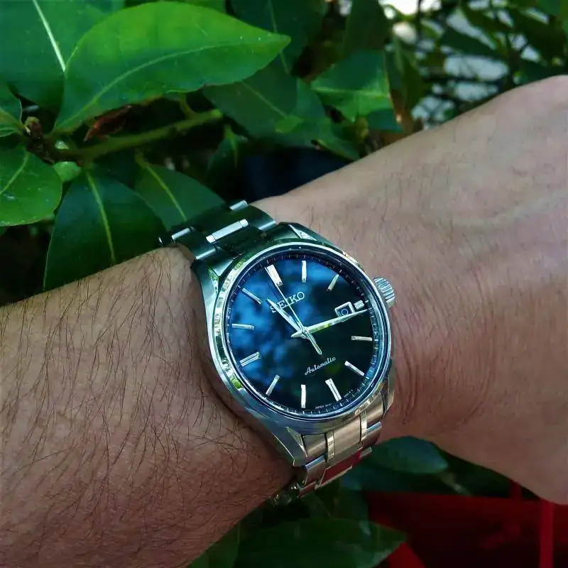 : Siempre me han encantado los GS. Tuve un Sarb033 que le regalé a mi mejor amigo y era un reloj que me encantaba por su estética clásica y moderna a la vez. Mi intención era comprarme un GS quartz para cubrir este hueco dejado(reloj de a diario muy polivalente) pero ayer se me cruzó la oportunidad de hacerme con un Sarx 035. La verdad es que estoy encantado con el. Es un reloj, muy cómodo y versátil con muy buenos acabados. Su brazalete está muy bien realizado(asignatura pendiente en algunos modelos de Seiko) Su caja se adapta perfectamente a la muñeca, el tamaño es ideal para los que no somos muñecafinos... es de 40mm. Me ha sorprendido y muy gratamente su dial negro con sus agujas facetadas. (todo un acierto la ventana del fechador en negro) pero lo que más me ha llamado la atención es su zafiro plano con un impresionante AR. Lleva el 6r15c que está más que probado y por ponerle un pero me hubiese gustado más con un fondo ciego. En definitiva, no es un GS, pero es una muy buena opción dentro de la horquilla entre 1000/2000e para un reloj automático de calidad y que sea polivalente. Unas fotos