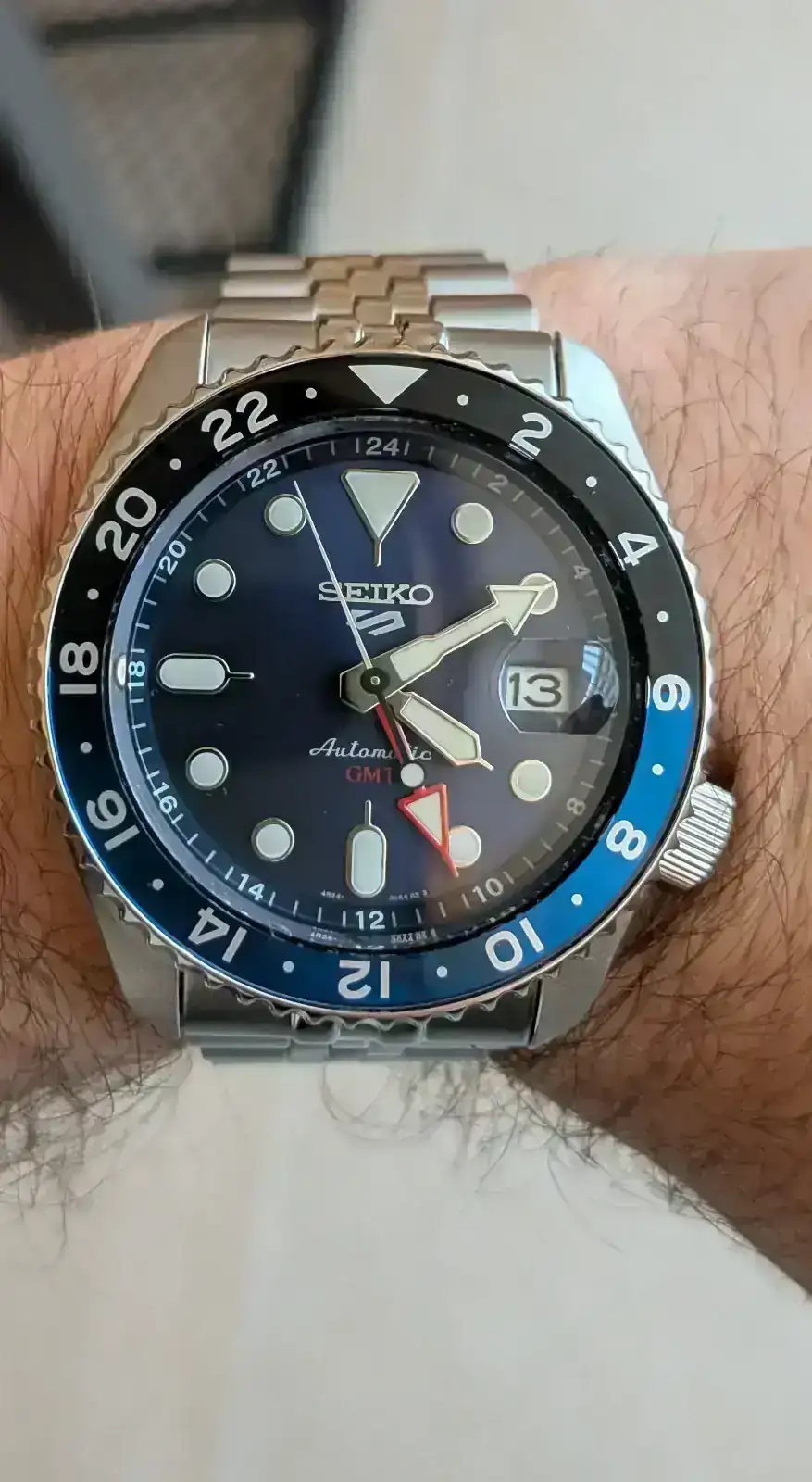 Hoy puedo decir que mi señora ha cumplido una gran ilusión que tenía... Nada menos que un Seiko 5 GMT Blueberry (alguno lo llama Batman 😌)
