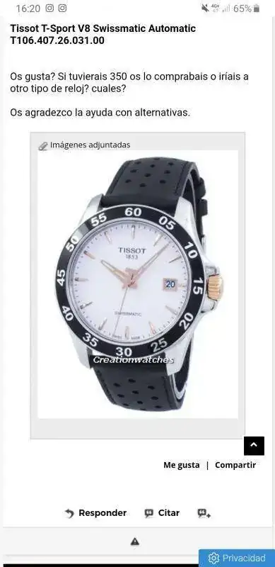 Soy novato y agradecería vuestra ayuda. Tengo 350 euros para gastar y estoy pensando en este Tissot: