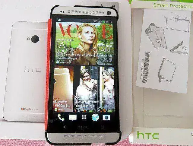 Adjunto una funda original que también compré con el teléfono, me costó 30 euros con portes incluidos. HTC DOUBLE DIP FLIP.
