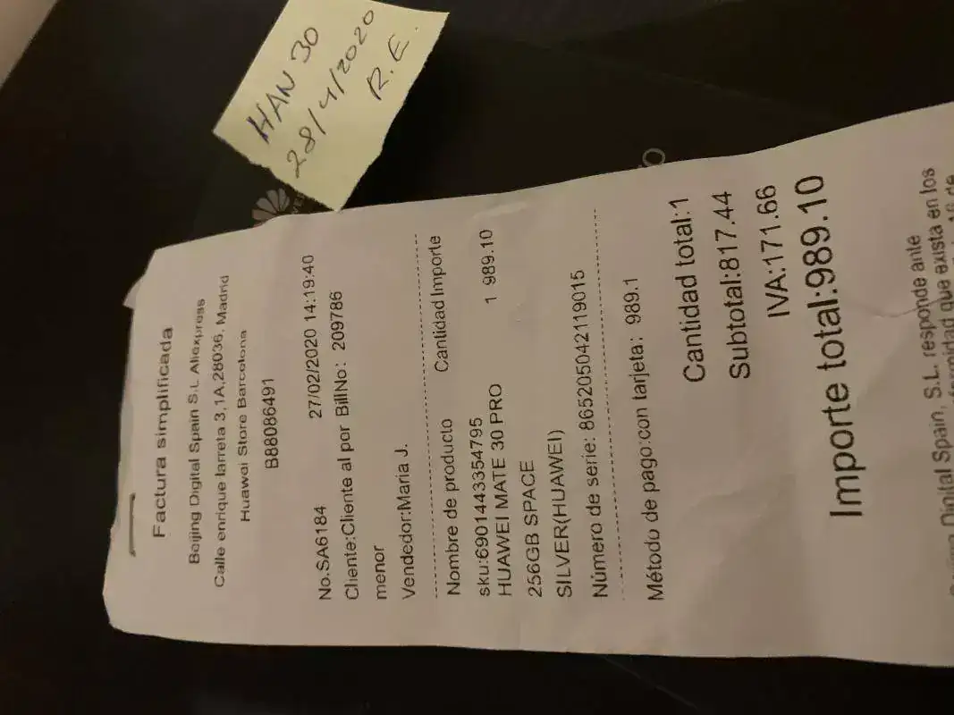 Modelo Europeo comprado en tienda Huawei con ticket de compra y toda la garantía por delante. (27/2/2020).