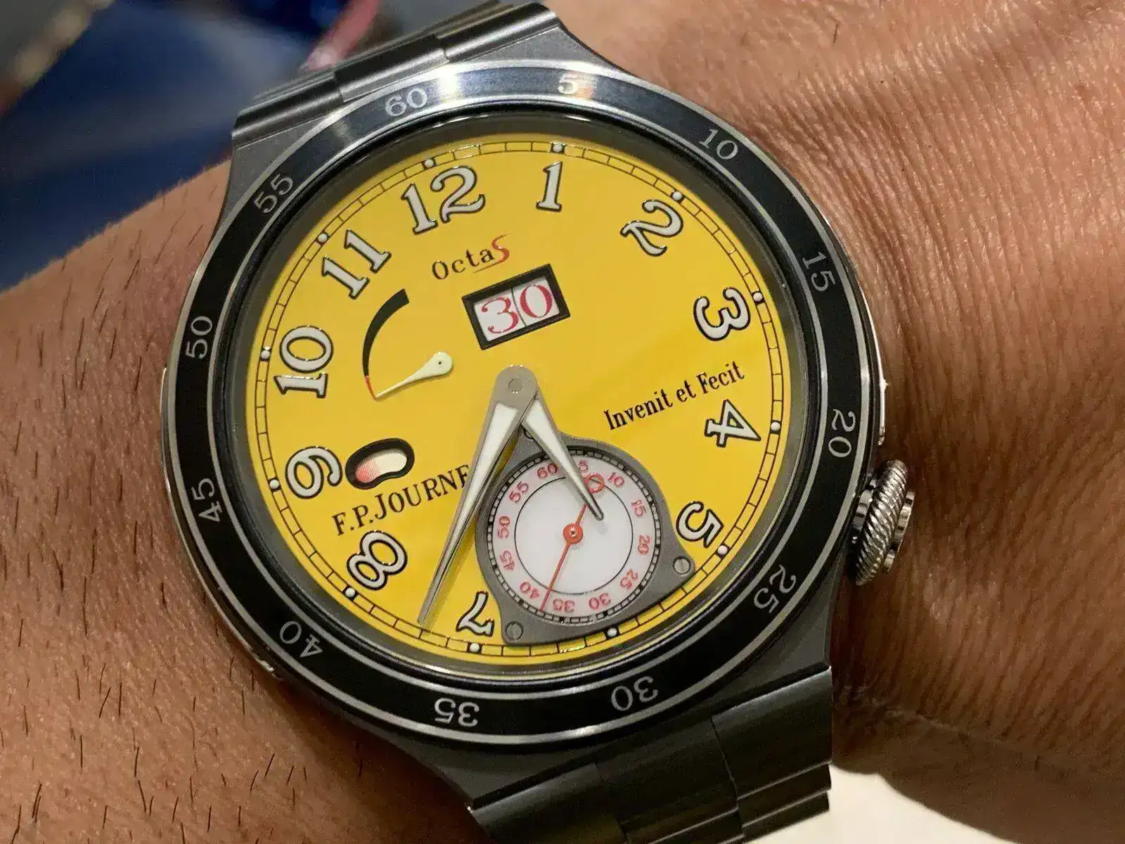 Es que ese Journe es otro nivel. Sería quizás el único amarillo que me gustaría llevar... Éste sí! Aparte no es un amarillo potente. Es más bien amarillo mate, sin brillo. Ya brilla el reloj simplemente por lo que es.A algunos horteras de bolera nos gustan los amarillos para el verano. Algunos se fueron y otros vendrán, pero siempre tiene que haber uno en mi selección veraniega: