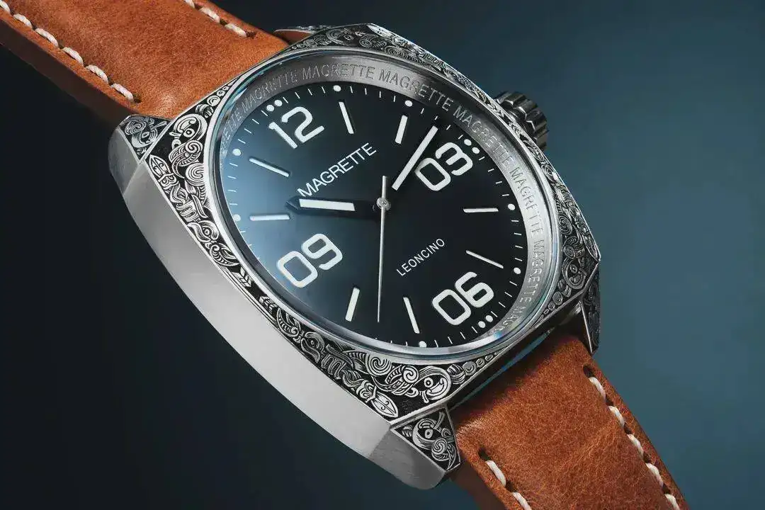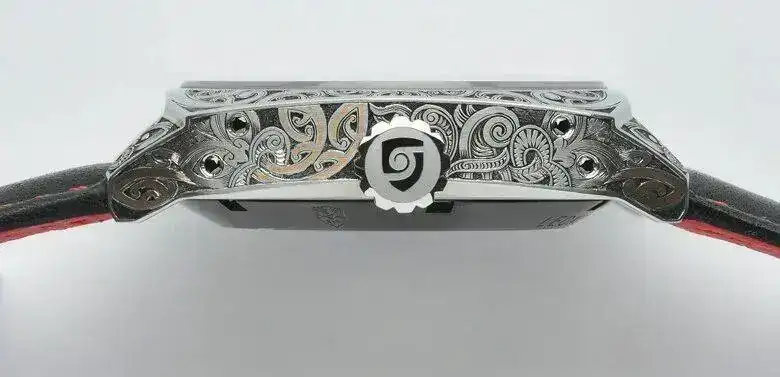 Titanio grabado y pulido en negro, decoración grabada diseñada por Shepard Fairey