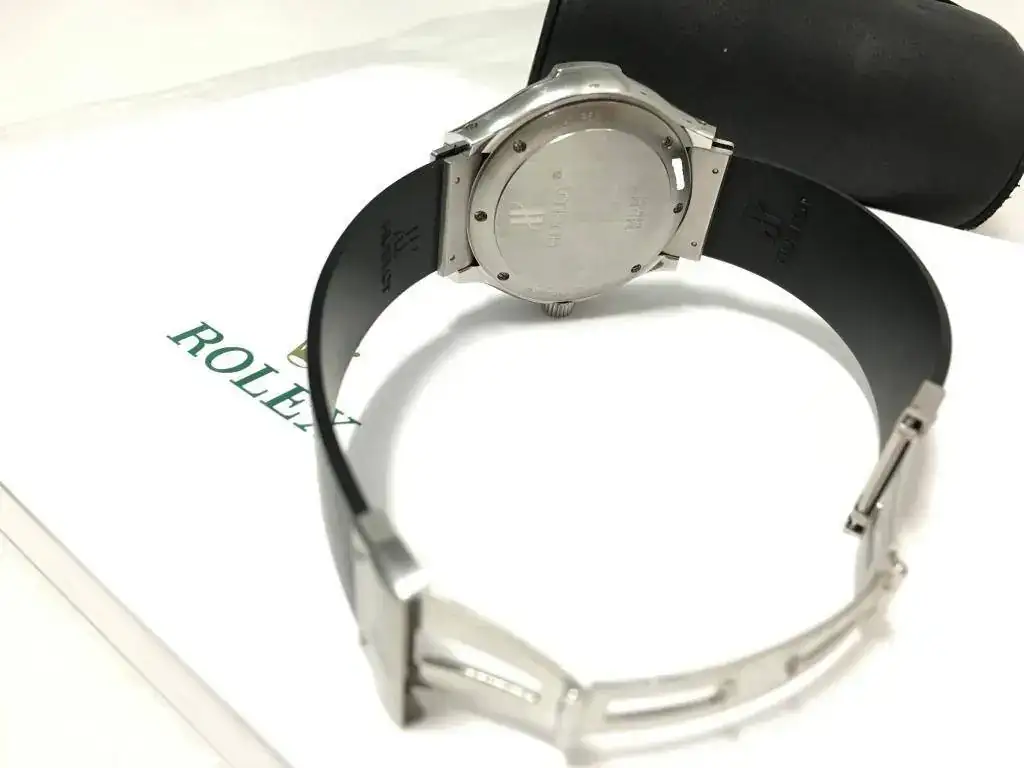 Resaltar que el reloj viene con varias correas de caucho originales Hublot (un juego de correas de caucho cuesta unos 160 euros) con las que se puede ajustar el reloj a la mayoría de las medidas estándar de muñeca