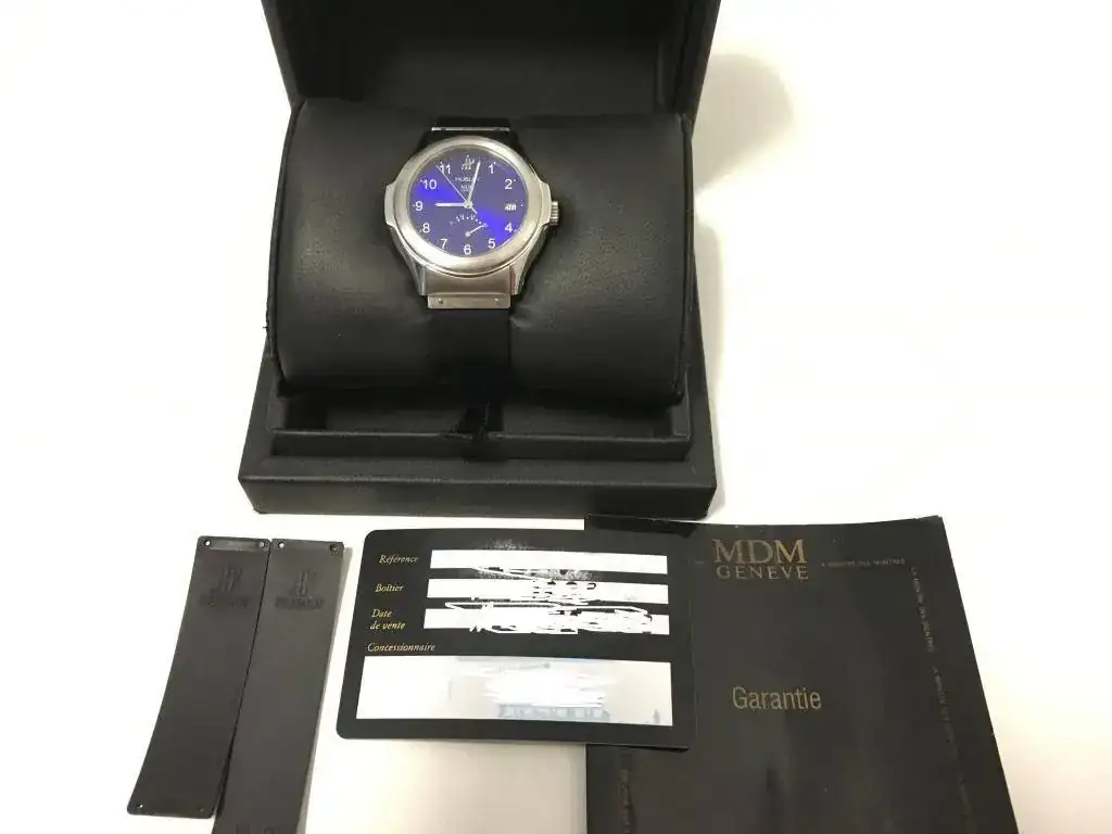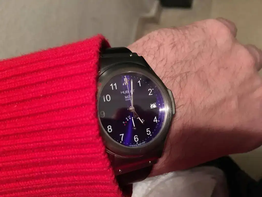 El reloj tiene medidas de caballero (40,5 mm sin corona) y automático por lo que nada tiene que ver con muchos de los Hublot de 36-38 mm y de cuarzo.